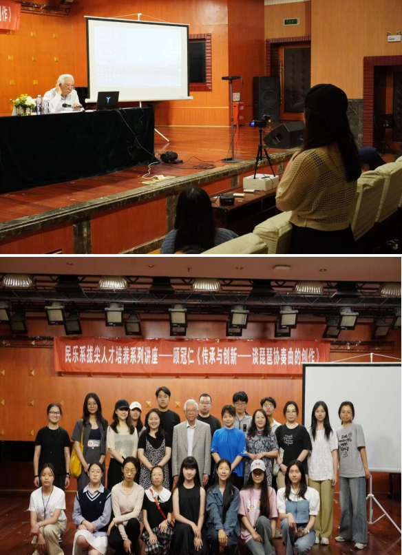 讲座尾声,顾冠仁先生通过对其作品的深度解析与创作心得的无私分享,生动诠释了“在传统中扎根,在创新中绽放 ”的音乐发展观。他呼吁作曲家与演奏家: 既要深刻体会时代脉搏,更新艺术手段;更要坚守文化自信,继承中外优秀传统,以开放融合的态度推动中国民族音乐走向更广阔的未来。这场讲座不仅是对其艺术生涯的回顾,是对中国民族管弦乐创作之路的宝贵指引。