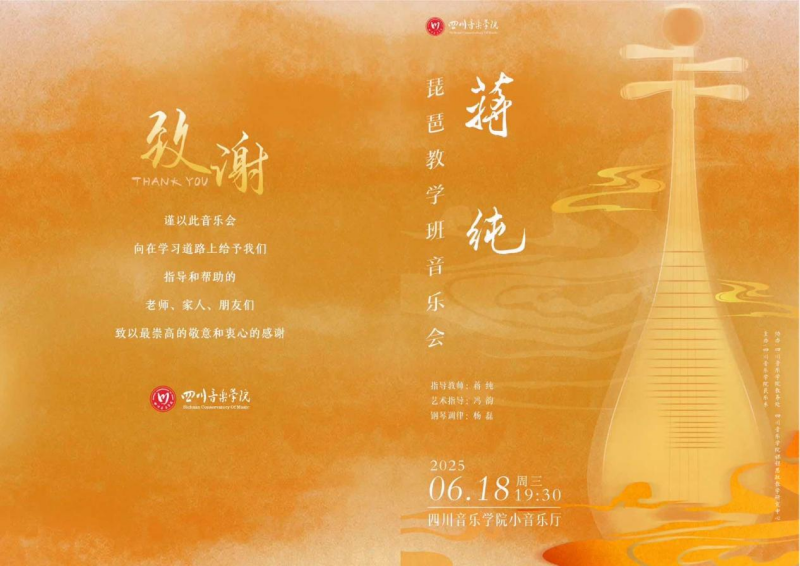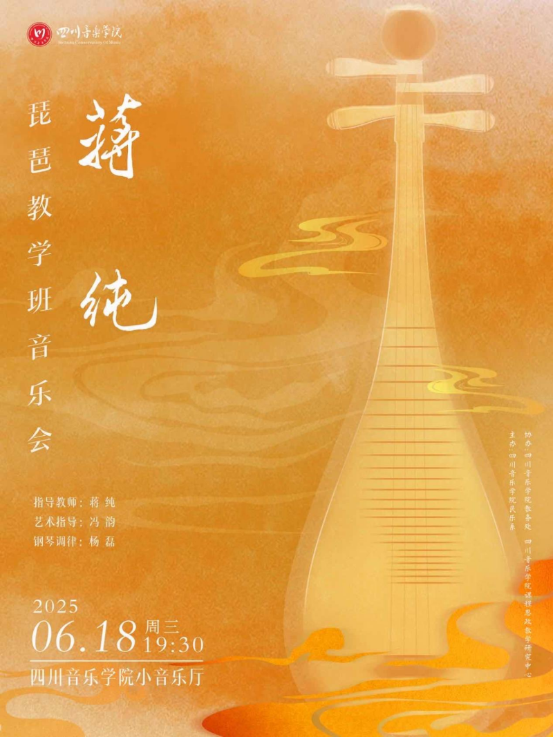 民乐系琵琶专业教师蒋纯教学班音乐会将于2025年6月18日晚7点30分在伟德bv国际体育小音乐厅举行。