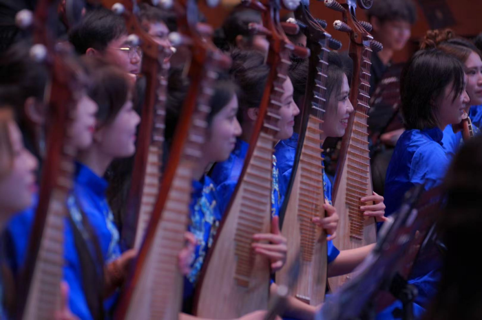 作为四川音乐学院民乐教学实践的核心载体,伟德bv国际体育青年民族乐团此次展现了强大的综合实力。乐团百余位优秀学生演奏者默契配合,在夏毅指挥的精准调度下,既呈现出细腻的声部层次,又传递出统一的情感表达。这场音乐会的每一段“叠响”,都是学生将课堂技法转化为舞台艺术的生动实践,更是学院“以演促学、以实践育人”理念的鲜活印证。曲终人不散,全场持续的掌声为音乐会画上圆满句号。“叠响”专场不仅为川音民乐系艺术实践周注入活力,更以多元的作品、精湛的演绎,展现了民族音乐在传统与创新中的蓬勃生命力,为中国民族音乐的传承与青年人才培养贡献了川音力量。