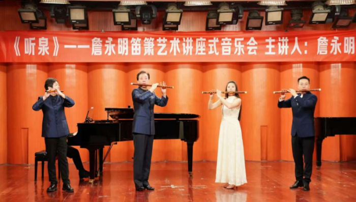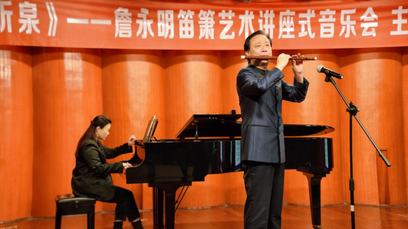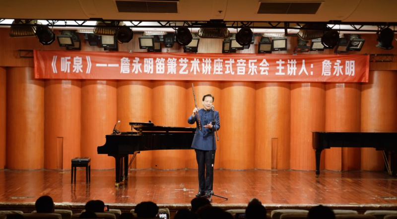 秋阳正好,笛韵悠扬。11月4日上午,伟德bv国际体育聂耳音乐厅座无虚席,“听泉——詹永明笛箫艺术讲座式音乐会”在此圆满落幕。作为民乐系第三届艺术实践周的重要活动之一,本场音乐会以“讲座+演奏”的形式,为师生与笛箫爱好者带来一场兼具学术深度与艺术表现力的竹笛艺术之旅。