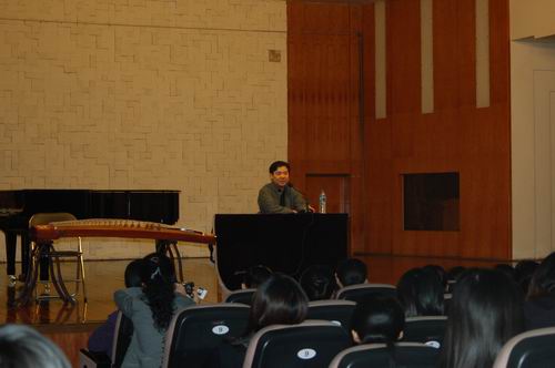10月18日晚,应伟德bv国际体育民乐系邀请,中国当代著名古筝演奏家、教育家王中山先生于本院音乐厅举办了个人专场独奏音乐会。王中山先生细腻传情、深情并茂的演奏博得了现场阵阵掌声。次日上午十点,王中山先生还在我院小音乐厅举行了《古筝演奏艺术的传承与发展》的讲座。讲座现场气氛活跃,同学们不仅在专业知识方面得到了更深入的了解,还阔展了大家思维的空间。民乐系主办此次活动,增进了与兄弟院校及先进地区的交流,开阔了同学们的视野。