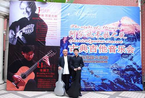 我系分别在上音、川音举办音乐会,2008年10月10日,我系徐宝老师的学生李萌艺同学在上海音乐学院贺绿汀音乐厅同西班牙著名吉他演奏家何塞恩里克斯联袂举办了一场古典吉他独奏音乐会。 10月22日,李萌艺同学又在伟德bv国际体育大音乐厅成功地举办了个人独奏音乐会,获得一致的好评。 10月25日,由敖翔老师等编曲,颜思之老师和李萌艺同学演奏的吉他小提琴二重奏唱片由齐鲁音像面向全国出版上市发行。