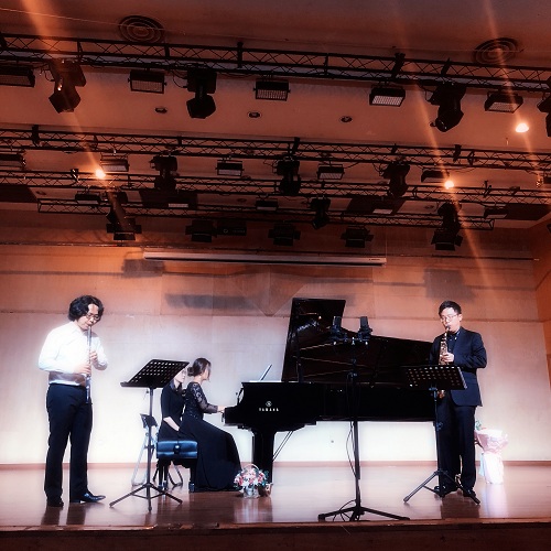 2018年5月13日19:30,我系萨克斯管教师易炼携手音教系罗翔老师和钢琴系老师陈雯来到四川大学,三位接地气、有个性、有趣味的给现场观众带来了一场讲座和音乐会,让台下听众感觉不虚此行。 音乐会中,易炼老师一共演奏了7首乐曲,分别是皮亚佐拉的《遗忘》,德里维拉的《两首小品》,川音青年作曲家刘力的《江岸灯影》,布扎的《咏叹调》,惠特尼的《伦巴舞曲》和戴夫•考兹的《我所看到的都是你》,整场音乐会风格对比鲜明,一“耳”了然,观众大呼过瘾。最后音乐会在罗尔夫•劳弗兰的《You Raise Me Up》中落下帷幕,现场观众也在优美的旋律中沉醉不已。