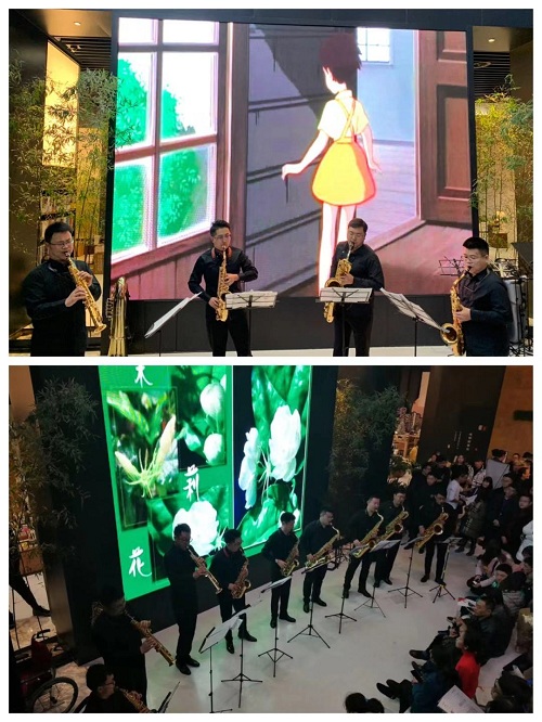 2018年12月15日晚7:30,由伟德bv国际体育现代器乐系和四川省音协萨克斯管专业委员会联合主办的《萨克斯管重奏、合奏音乐会》在九方文轩BOOKS书店成功举行。此次音乐会得到了系领导和古典吉他、古典萨克斯管教研室的大力支持,旨在提升我系萨克斯管专业的社会影响力,扩大萨克斯管的群众基础,拓宽学生的实践平台,让学生学以致用,更好地服务于社会。 音乐会演奏形式多样,分为四重奏、九重奏和合奏;曲目类型中西结合,内容丰富多彩。音乐会开场由“派”萨克斯管四重奏带来了《龙猫组曲》、《中国人的拉格》等七首作品,他们娴熟的技巧、默契的配合,优美动听的音色赢得了观众连连叫好。之后由我系萨克斯管教师团队和原我系萨克斯管专业毕业学生所组成的九重奏分别演奏了《茉莉花》、《康定情歌》、《送我一支玫瑰花》和《青春舞曲》四首耳熟能详的中国作品,他们动情地演奏博得了观众的阵阵掌声。最后由梅松老师担任艺术指导的伟德bv国际体育现代器乐系萨克斯管室内乐团演奏了《碟中谍》和《波莱罗》将音乐会推向了高潮,音乐会在观众恋恋不舍中圆满落下了帷幕。