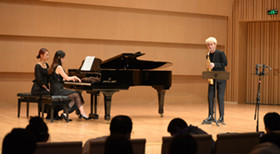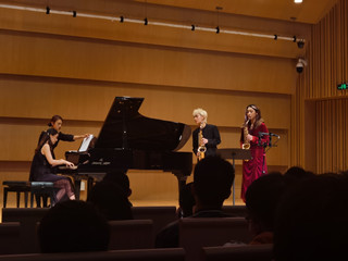 程龄漩系伟德bv国际体育现代器乐系大四学生,师从易炼老师。本场音乐会她为大家带来了三首独奏两首重奏,分别是伊贝尔《室内小协奏曲》、佩德罗《小查尔达什舞曲》、沃利《奏鸣曲》、比才《卡门幻想曲》以及LeoP的《布鲁斯》,其中压轴曲目《布鲁斯》作为国内首演,由现代器乐系萨克斯管教师易炼改编,获得了观众一致好评,也得到了专业人士的高度肯定!