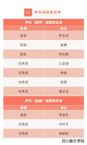 在第四届成都金芙蓉音乐比赛中,经过激烈角逐,我系2018级学生程星韵取得优秀奖。特向全系报喜,并向程星韵及何姣老师、声乐艺术指导曾亮老师表示热烈祝贺!