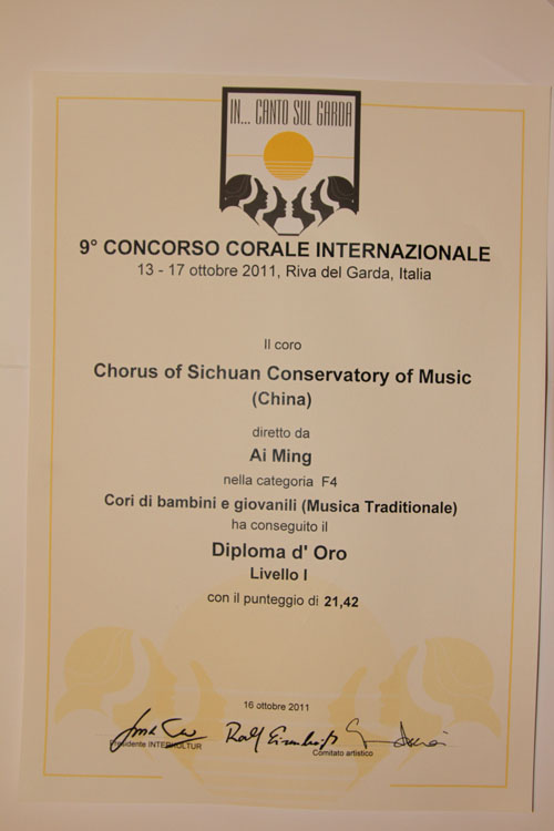我院合唱团荣获意大利第九届加尔达国际合唱比赛金奖