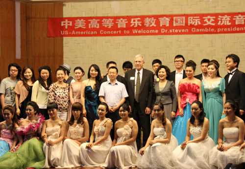 5月23日晚7点30,学院小音乐厅人声鼎沸、人头攒动,由伟德bv国际体育外事处、歌剧与合唱系主办的“中美高等音乐教育国际交流音乐会”在伟德bv国际体育小音乐厅成功举行。莅临音乐会的有美国东新墨西哥大学(ENMU)校长史蒂文.盖博博士、我院副院长孙洪斌副教授、系主任张莉教授、系党总支书记刁锡强以及全系师生。 这台精品音乐会由15个节目构成,涵盖了舞蹈、独唱、合唱、钢琴、武术等各门类艺术表演形式,而我系师生用了仅仅三周的时间排练,就让观众享受了一场视听的盛宴,展示了歌剧合唱系师生的综合艺术素质和办学特色。时长一个半小时的节目中不仅保留了传统美声歌剧独唱曲目,也新增了颇具地方民族戏剧特色的《亲疙瘩下河洗衣裳》,还有从美国东新墨西哥大学留学归来的学子汇报演唱的二重唱《费加罗的婚礼》、《唐璜》选段。而青年教师们也用丰富的舞台表演经验诠释了歌剧选段《笑之歌》和爵士歌曲《A Nightingale sang in Berkely Square》。 与以往的音乐会不同,此次音乐会活泼而不失严肃,热闹而不失分寸,台上台下互动热烈,掌声雷动,观众们久久不愿离去,沉浸在今夜无人入眠的兴奋中。这标志着歌剧与合唱系两年来的办学成果已初见成效,今后还会继续加强对外交流合作,将教学质量提高到一个新的高度!