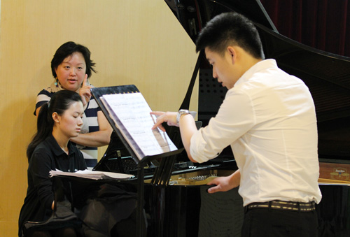 应歌剧与合唱系之邀,6月11至13日,美国密西根大学声乐艺术指导邱怡教授在伟德官网开设大师班,在历时3天的大师班时间里,伟德官网4名伴奏专业的学生、4名伴奏老师以及歌剧专业的师生有幸得到了邱怡教授的悉心指导。她与大家分享了自己对作品的理解和心得,讲解如何用钢琴弹奏歌剧咏叹调的伴奏、如何弹黄自的伴奏、如何弹艺术歌曲的伴奏,并指导歌唱者在演唱外国作品里的语言、吐字、发音、作品风格、以及音乐处理方面的问题。这些,都给在场的师生们带来了极大的收获。 6月14日下午,邱怡教授还举办了一场题为“在美国学习声乐艺术指导”的讲座,介绍了声乐艺术指导在美国的发展简介,以及美国音乐院校为声乐艺术指导专业设置的课程,并向大家介绍了一组当今世界著名的声乐艺术指导的名单,和一组在德奥艺术歌曲和法国艺术歌曲中唱得好的歌唱家的名单(女高、女中、男高、男中都有),以供大家今后买碟收藏学习欣赏用。 本次大师班授课及讲座,歌剧合唱系的全体声乐艺术指导专业的学生、老师,声乐一系、二系、钢琴系、音教系的部分老师和学生均到场聆听。邱怡教授丰富的内容和深入浅出的讲解,受到了师生们的热烈欢迎。邱怡教授的系列讲座和授课今后还将继续。