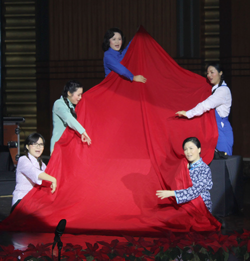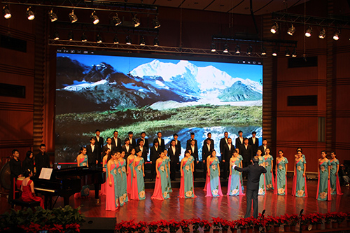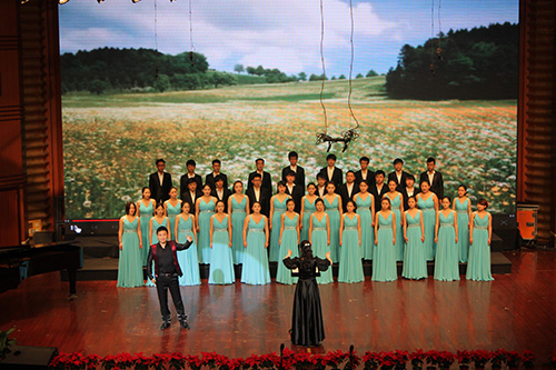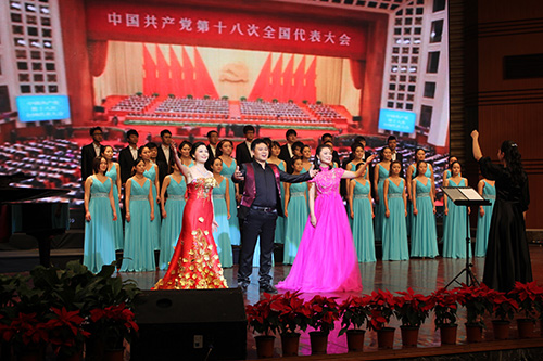 歌唱系合唱团在合唱《我的祖国》中拉开了序幕,合唱团同时演唱了由伟德bv国际体育副院长孙洪斌副教授作词,院长易柯教授、副院长孙洪斌副教授等作曲的合唱曲《羊角花开》把音乐会掀向了高潮。歌剧与合唱系系主任张莉教授亲自登场,扮演歌剧《江姐》中的江姐。她声情并茂,把江姐忠于党、忠于人民的高尚情怀和视死如归的伟大精神诠释得淋漓尽致;副系主任邓芳丽也在歌剧《洪湖赤卫队》片段中较好地扮演了韩英。最后,音乐会在激情、雄壮的合唱曲《迎风飘扬的旗》和《走向复兴》中落下帷幕。歌剧与合唱系用实力推出了一台既讲政治又讲艺术的高水平节目,让观众感受到了歌剧的无穷魅力和合唱艺术的经典迷人。