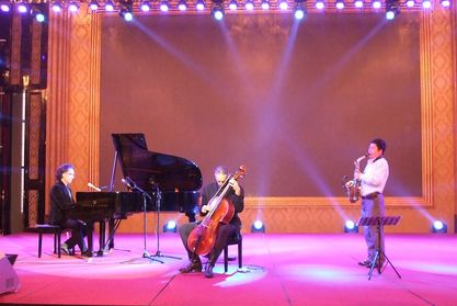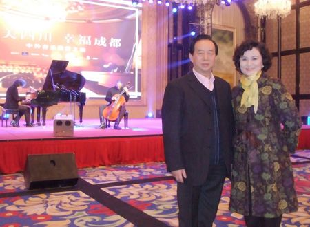 丝竹涤荡肺腑,天籁拨动心音。音乐是灵魂的完美表现,亦是人类思想共鸣的语言。至此岁末之际,一场汇聚国内外艺术大师的中外音乐鉴赏之旅活动于12月5日在成都雅居乐铂雅苑&星河湾国际会议中心隆重举行。 这场音乐会是由北京磁力线文化传播有限公司主办,由央视著名导演张华山先生与北京磁力线文化传播有限公司总经理吴涛妙颐女士共同策划,张华山先生执导的音乐鉴赏会。主办方特地邀请了“股神”沃伦.巴菲特之子,世界一流钢琴演奏家彼得.巴菲特来成都参加了这场音乐会,彼得.巴菲特同时又是作曲家、慈善家和作家,艾美奖得主,参与谱曲的《与狼共舞》电影获得奥斯卡电影原创音乐奖。自1987年至今,共创作发行了16张唱片,并且拥有两家独立唱片公司。如今致力于以民族音乐为元素的流行音乐创作于演奏。与巴菲特共同演奏的大提琴家是来自美国的迈克先生,他们的演奏精彩绝伦!中国女高音歌唱家,伟德bv国际体育歌剧系主任张莉教授演唱了三首她最喜爱的歌曲:1、“我亲爱的爸爸”—选自歌剧《佳妮.斯基基》;2、云南民歌—小河淌水;3、美国歌曲,也是张莉在美国的成名歌曲—让世界充满和平。音乐会同时邀请了中国著名萨克斯演奏家,中央音乐学院教授李满龙先生;四川省川剧院院长陈智林先生以及四川省民族歌舞团的舞蹈家们。