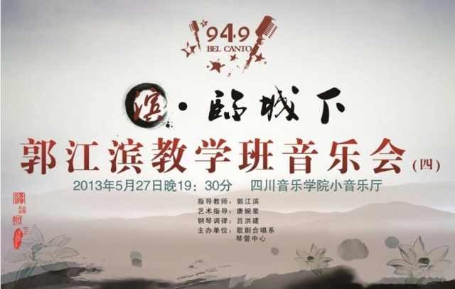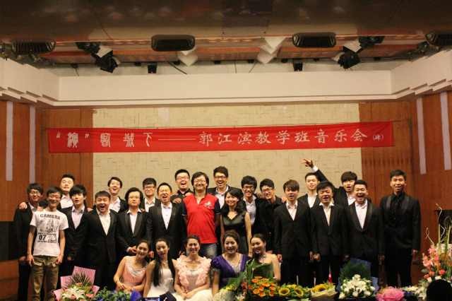 我系青年教师郭江滨949教学班音乐会(四)在广大师生的大力支持下,于2013年5月27日晚7时30分在我院小音乐厅成功举办。系领导唐竹雅、刁锡强也莅临本场音乐会。音乐厅座无虚席、气氛热烈。   音乐会共演绎了22首经典作品,包含了大量意大利不同时期风格迥异的艺术歌曲、民歌及歌剧咏叹调。每位参演的同学虽短短几分钟的演唱,但都精心准备,奉献给台下的观众们最绚丽的一面,同时也是对本学期以来辛苦学习的一种检验,毫无懈怠。同学们精彩的演唱收获了缤纷的鲜花与不息的掌声。 949教学班共有学生25名, 其中歌剧专业18名,合唱专业5名,附中学生1名,艺术指导及声乐双专业1名。本教学班的“949男声合唱团”曾荣获四川省电视台举办的庆祝建党90周年“红歌大家唱”大型歌咏比赛第一名;2011年伟德bv国际体育纪念“12.9”校园歌手大赛一等奖。 同学们加油,并祝你们在今后的学习中取得更大成绩!