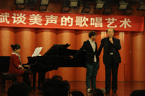 2013年11月19日--11月20日,我国著名男中音歌唱家,国家一级演员、原东方歌舞团团长、中国歌剧舞剧院院长,现任中国合唱协会理事长田玉斌先生应我系之邀,举行了为期两天的大师讲学。出席本次讲学的有原伟德bv国际体育的副院长李西林教授、歌剧合唱系副系主任唐竹雅副教授、刁锡强书记以及我系全体师生。 田玉斌先生不仅在演唱上取得了瞩目的成就,同时也是一名出色的声乐教学家,在为期两天的讲学中,田玉斌先生以《谈美声的歌唱艺术》为主题,用幽默风趣的语言,深入浅出地给我系师生讲述了声乐歌唱的理念。同时,田老师为系里青年教师以及部分尖子生现场授课。在我系青年教师郭莹演唱的《离家去远方》讲课时,田老师由衷地评价,我们伟德bv国际体育的教学声音观念很正确,嗓音很优美,技术很完善。并给师生提出了宝贵的建议,对我系师生的整体演唱水平和音乐修养的提高都起到了促进作用。整个讲学会场座无虚席,过道都有站立听讲者,全场师生及来宾在轻松愉快的氛围中度过了两天的学习。