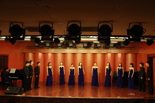2014年6月27日上午,歌剧合唱系合唱专业的考试音乐会在我院聂耳音乐厅举行。本场音乐会是实行新的考评机制以来第七场兼有考试性质的表演音乐会。    此次音乐会作品风格各异,合唱专业大一、大二、大三所有学生以小组的形式演唱了总共十五首合唱作品。部分作品是又学生在音乐会前2周开始自行组织排练、编排、配合。同时也要求了学生自主对合唱这种多声艺术形式中的呼吸、共鸣、发声位置、速度、力度、音色等多方面进行统一协调配合。本场音乐会由歌剧合唱系合唱专业教研室主科老师及部分声乐老师对学生进行评分。    这种考试机制已成为合唱专业考试的一种常态,学生在舞台上的展示也越来越全面,越来越自信,充分体现了合唱专业这种新的考试机制的合理性、科学性和先进性。