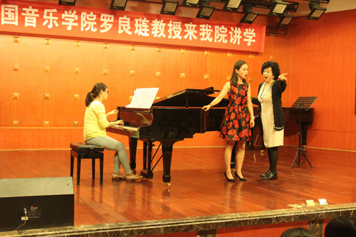 2015年 5月25日-5月26日,中国音乐学院罗良琏教授应我系之邀,在星海音乐厅举行了为期两天的专家讲学活动。出席本次讲学的有歌剧合唱系副系主任唐竹雅副教授、刁锡强书记以及我系全体师生。 罗良琏教授是我国著名的声乐教育家,她辛勤耕耘于声乐教学这块土地上已逾五十载,在声乐教学与研究等领域积累了丰富经验并取得了丰硕成果,培养了一大批优秀的声乐演唱人才和声乐教学人才,从事教学五十年来她曾两次被评为中国音乐学院“教书育人先进工作者”。在为期两天的讲学中,罗老师以《关于美声教学的思考》为主题,结合多年的教学经验,从音乐、技巧、语言、风格四大要素深入浅出地给我系师生讲述了声乐歌唱的理念。同时,罗老师为系里青年教师(庄文静、代丽、叶琤、张运超)以及部分尖子生现场授课。在指导演唱中,罗老师用精湛的演唱技巧,耐心的为老师同学做出一次一次的示范,引起全场师生一阵又一阵的欢呼与掌声。 罗良琏教授讲课方式幽默风趣,为人谦逊、随和。其精湛的艺术修养征服了在场所有师生。整个讲学会场座无虚席,过道都有站立听讲者,本次讲座在师生们的欢呼声、掌声中画下圆满句号。