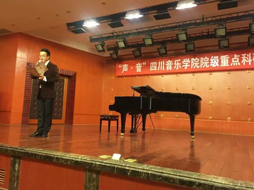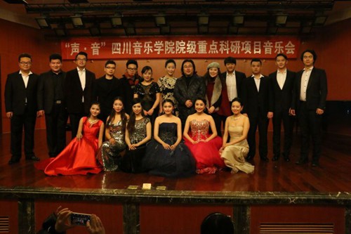 12月22日,由我系唐竹雅老师负责、主持,参研团队成员:我系青年教师张运超,叶琤,郭莹,徐子雯共同研究,由我系艺术指导教师谭赟、吕晴担任钢琴伴奏的院级重点科研课题《国际音标在外国歌曲中的应用》科研音乐会在星海音乐厅成功举办。 音乐会将研究成果一一运用在了意大利语、德语和法语歌曲的演唱中。整场音乐会每首歌曲钧用国际音标标注,并突出标注出了易错发音,音标与演唱实际结合等核心成果都在现场用投影仪投放在大屏幕上供专家,老师,观众现场指导和参考。参加音乐会的12名学生都是来自课题组成员的声乐教学班,他们通过课题研发成果,逐字逐句纠正外语发音,现场实际演唱效果都得到了观众的一致肯定。尤其是该课题对中国歌曲同样可以使用国际音标的延伸研究更是音乐会的亮点。 本次科研项目音乐会的成功举办,标志着我系科研与实际声乐教学相结合已经迈出了一大步,但仍然还需要课题组全体师生继续努力和研究,争取创造新的高度与成果。
