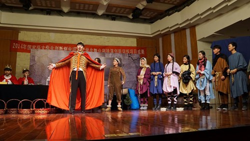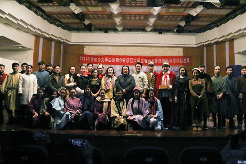 2016年1月7日晚7:30分,我系青年教师郭莹、叶琤、吕晴指导的国家级大学生舞台剧排演创新计划项目成果展示的独幕轻歌剧《阿莫与夜访者们》在小音乐厅成功上演。 该歌剧全部由英文演唱并由学生们自导、自排、自演,整场演出的道具、舞美、服装都是由学生自行完成,整部严格按照歌剧排演规范完成。 通过此次歌剧的演出,同学们深刻的体验了独唱、重唱、合唱的演出风格,让学生在剧本学习、音乐表演及舞台编排等方面都有了长足的进步。