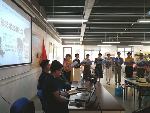 8月26日,伟德bv国际体育歌剧合唱系大学生创新创业团队携手营门口街道综合性文化服务中心组织开展的“高雅艺术进社区”艺术普及课堂在花照壁社区党群服务中心热烈开讲。 伟德bv国际体育歌剧合唱系叶琤老师和由伟德bv国际体育歌剧合唱系学生周一依负责的大学生创新创业团队以“讲座+微信雨课堂+音乐会”线上线下互动模式,通过沉浸式体验方法,为大家介绍了“什么是真正的艺术”.“艺术音乐与商业音乐的区别”.“各时期艺术音乐风格”等专业音乐知识,大家随着叶琤老师深入浅出的讲解和大学生创新创业专业团队的示范表演,在美妙的音乐享受和轻松的氛围中,感受到了声乐艺术的非凡魅力。讲座现场,叶琤老师还对参加培训的3个社区合唱队的表演节目进行了专业的点评和细致的指导,让大家对提高自身声乐艺术水平和声乐表演能力有了具体实际的领会和感受,大家都感觉受益匪浅,受用无穷。 本次音乐课堂正式启动了营门口街道和伟德bv国际体育大学生创新创业专业团队合作开展“高雅艺术走近群众走进社区”的系列活动,接下来街道将借助伟德bv国际体育大学生创新创业团队专业力量为辖区居民群众带来一场又一场音乐鉴赏.声乐培训的讲座.辅导和演出,把高雅艺术音乐无门槛地带到居民群众身边,不断提升居民群众的文化品味和艺术素养,并通过持续推进和深化“高雅艺术进社区”活动,努力打造营门口街道又一张特色文化名片。