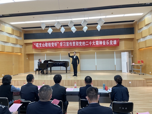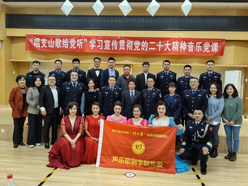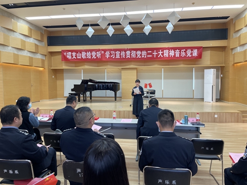 10月27日下午,声乐歌剧学院党委与四川省公安厅队伍建设处党支部联合开展“唱支山歌给党听”学习宣传贯彻党的二十大精神主题音乐党课,用艺术的形式拓展学习载体、浓厚学习氛围、提升学习效果。