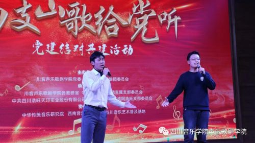 党课结束后,“唱支山歌给党听”文艺汇演正式开始,我院30多名师生和浩旺集团职工代表共同带来了一首首经典励志歌曲,歌颂了我党百余年来带领全国各族人民战胜困难,创造幸福生活的深刻历程,在艺术歌声中,感受家国情怀,衷心为党的初心。最后,谭学胜在大家热情的邀请下,深情演绎了《说句心里话》《军人本色》等作品,将现场的氛围掀起了阵阵高潮。