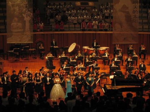 “自强不息,我们和你在一起!”“众志成城,重建家园,用爱撑起一片天!”一场为支援四川地震灾区抗震救灾而推出的交响音乐会,5月23日上午9时许在北京国家大剧院拉开帷幕。 我系青年教师唐竹雅在国家大剧院“众志成城,重建家园,用爱撑起一片天!”中成功的演唱《爱的光芒》,表达了灾区人民对党中央和全国人民的衷心感谢!