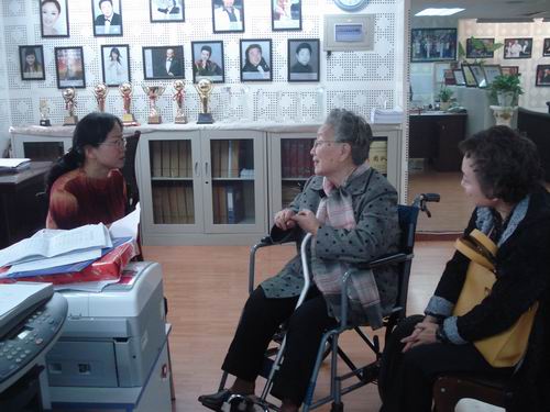 10月24日下午3:00,抒情花腔女高音歌唱家、声乐教育家郎毓秀先生来系了解08年研究生教学模式。之后,在系主任杨士华陪同下参观了系办公室、走廊上墙的老照片。