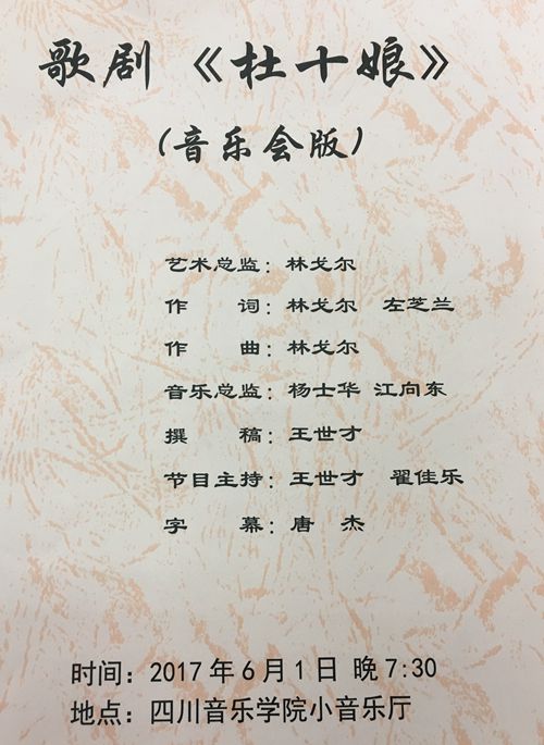 歌剧《杜十娘》(音乐会版)6月1日19:30在小音乐厅演出