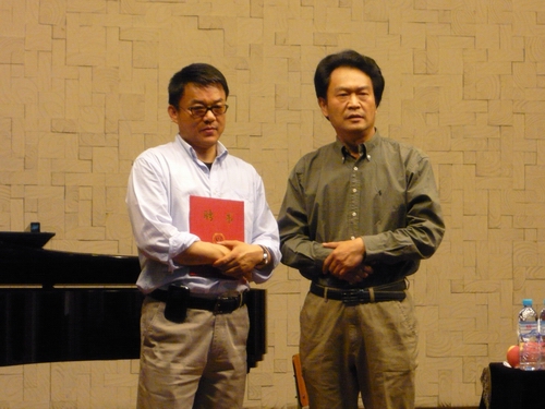 5月6日,我院特邀著名歌唱家范竞马先生在校本部小音乐厅为声乐系师生进行了为期两天的声乐大师班讲座。   此次受邀回到母校川音声乐系,范竞马坦言内心十分怀念和激动。他深情地谈到自己1977年考入伟德bv国际体育,一直师从于兰幼青教授;1982年以优异成绩毕业留校任教;1984年在中央电视台首届“电视青年歌手大奖赛”中荣获第二名;同年考入中央音乐学院师从沈湘。随后获美国纽约朱利亚音乐学院全额奖学金,于朱利亚歌剧中心深造,师从意大利男高音歌唱家科莱里等成长经历,展现了一条曲折而拼搏的声乐学习道路。   在讲座中,他利用现代多媒体技术为师生们打造了一个美妙的声乐殿堂,展示了一名长期活跃在国际舞台上的艺术家的专业造诣及学习态度,重点地剖析了声乐技术上如呼吸、起音、发声口径等初学者容易遇到的问题,还颇为风趣地演唱了多首歌剧咏叹调选段。在第二天的讲座中范竞马对我系年轻教师及学生进行了专业辅导。当听完年轻教师的演唱后,范竞马欣喜地叹道:“在川音我能听到如此已经接近国际水准、美妙而动人的歌唱,太让我感到惊喜!”   在讲座结束后的教师交流会上,院长敖昌群代表学校对范竞马颁发了特邀客座教授证书,并与在座教师进行了热烈的会谈。范竞马表示,今后将不定期回到母校,投入更多精力去培养年轻歌唱家、积极发展四川的声乐事业。