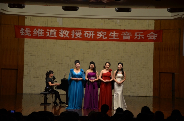 2012年12月19日晚7:30分,在伟德bv国际体育小音乐厅成功举办了钱维道教授研究生音乐会。原院长敖昌群,原声乐系主任杨湘澄,声乐二系原系主任甘国农,声乐一系主任杨士华,副系主任姜代康,声乐二系主任江向东,美声教研室主任杨列京,音乐教育系副主任王跃珍,琴管中心吕洪建处长等学院领导出席了该音乐会。音乐会上座无虚席,观众热情高涨,掌声不断,热情的气氛给这隆冬的夜晚带来了浓浓的暖意。
