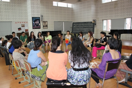 2013年7月11上午10:00在系党总支书记文雯组织召集下,我系32名党员教师在八楼排练厅举行“乘着歌声的翅膀,爱在心间——声乐一系党群路线教育学习”活动。 会上,声乐一系党总支书记文雯传达学院党委会议精神,学习和宣传习总书记的精神指示,深入领会习总书记四句话:一、照镜子;二、正衣冠;三、洗洗澡;四、治治病;开展批评与自我批评,以实际行动密切党群、干群关系、为民务实。 会上,党员教师积极发言,希望党组织多开展这样的教育活动,给每个教师正能量;大家要做有激情有信仰的人,让自己的工作更上新台阶,珍惜当下美好生活,把自己的正能量传给身边的每一名学生。 文书记最后联系到我系实际,对大家提出了具体的要求。她说,我系一位优秀的党员年轻教师在一年前去世了,如今她母亲一人已年愈古稀,生活孤苦,希望系上的党员教师利用周末和假期时间去看看老人家,生活上给老人家以关心和照顾;也希望党员教师发动自己的学生,利用闲暇时间帮助孤寡老人。文书记说,只要我们心中有爱,就会把这份爱一直传递下去,尽自己的绵薄之力去帮助身边一切需要帮助的人。