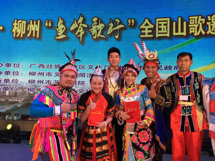 2016年4月9日,我系学生应邀参加广西自治州文化厅和柳州市人民政府举办的2016年第三届广西•柳州“鱼峰歌圩”全国山歌邀请赛,与来自全国各个民族的选手经过紧张激烈的角逐与竞争,最终取得了两项最佳演唱奖:刘丽亚(指导教师:陈辉副教授)、尔玛娜依(指导教师:张丽娟教授)和一项最佳风采奖:拥中布(指导教师:陈辉副教授)的优异成绩。特向获奖学生及其指导教师表示祝贺!