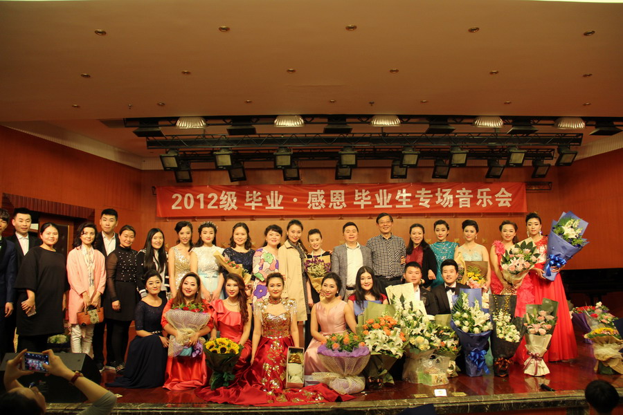 2016年4月12日晚在伟德官网星海音乐厅,我系举行了“毕业•感恩—2012级毕业生专场音乐会”,本场音乐会由系主任杨士华教授、文雯书记和系副主任邓芳丽教授策划,民族教研室主办,由民族教研室副主任陈辉副教授执行。 音乐会共有18首曲目,每一位上台演唱的同学都是由民族教研室的老师们经过推荐出来的学生代表。音乐会上,同学们尽情歌唱,唱着自己的故事唱着自己的人生,最后一曲《感恩》更是将整场音乐会推向高潮,不少老师和同学纷纷落泪,观众一次又一次的自发的为毕业生演唱鼓掌喝彩。 音乐会结束后,也就意味着“毕业季”正式的到来,2016届毕业生们也将投入到社会中去,至此,声乐一系祝所有毕业生怀揣着梦想飞翔更加广阔的天空!
