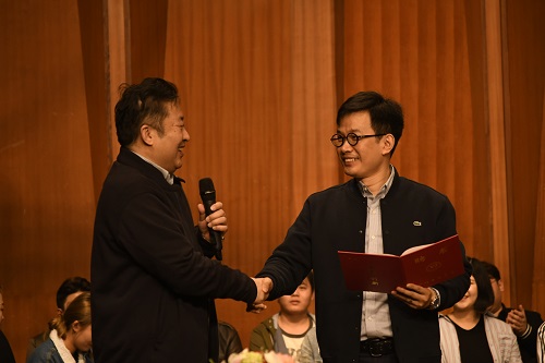 2018年12月1日上午,著名男高音歌唱家石倚洁莅临伟德官网大音乐厅举办声乐讲座。会场座无虚席,一票难求,同学们热情高涨。现场石老师分别给魏源、龚军悦、谢鹏、崔美慧以及杨俊老师对音准、节奏、气息及作品的处理做出认真的指导点评。石老师以他独特的个人魅力专业的歌唱技巧给同学们留下了一堂精彩绝伦的声乐讲座。在讲座最后,声乐系党总支书记兼系主任江向东教授为石倚洁教授颁发了聘书,聘石倚洁教授为我系特聘教授!参加讲座的师生们表示受益良多,讲座结束后纷纷上台和石老师合影留念。