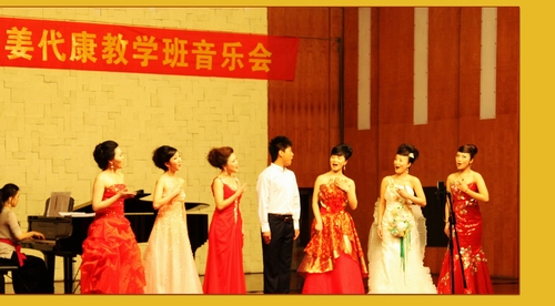 5月21日晚小音乐厅,姜代康老师教学班的八名同学声情并茂地演唱了十多首脍炙人口的民族歌曲。同学们的精湛演出及良好的台风受到了观众的一致好评。