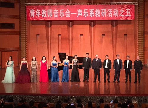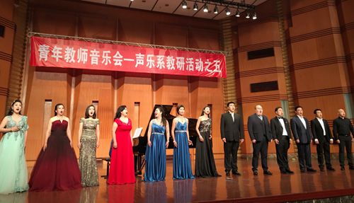 2017年6月15日晚声乐系青年教师音乐会在我院大音乐厅隆重举行。这是自我院声乐一系和声乐二系合并以来的第一场教师音乐会。    我系13位青年教师参加了此次音乐会,老师们虽然平时忙于繁重的教学工作,但是为了每一个节目的精益求精,老师放弃自己的休息时间,不断地练习演出曲目。 6月15日晚,音乐会如期与观众们见面。曲目从多角度、诸层次进行了精心挑选,为观众们呈现了一台多元化的声乐作品集锦。开场是由全体参加音乐会的老师们演唱《我爱你,中国》,激情的演唱赢得台下观众热情的喝彩。音乐会的作品有《酒能解千愁》,《啊,爱只是一天》,《寻常故事》,《我怎样去爱你》,《醉汉之歌》,《卡迪斯姑娘》,《你是如此,我的女王》,《春江花月夜》,《奇妙的和谐》,《两地曲》,《我怎能入睡》,以及二重唱《海恋》等等,老师们声情并茂的演唱,得到了同行专家的高度评价与广大观众的热烈赞扬,音乐厅内掌声此起彼伏。 音乐会结束后,系主任杨士华教授带领教研室主任对大家的倾情演出给予了高度评价与充分肯定,这次音乐会不仅是我系青年教师风采和成果的集体展示,也是面对全院师生的一次大检阅。音乐会的成功举办,必将激励全系教师再接再厉,不断提升专业素养,切实做好教书育人工作。