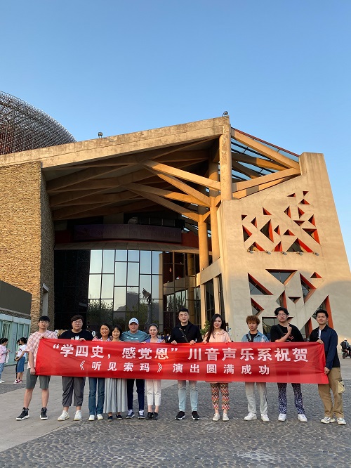 演出临近之际,声乐系教研室副主任宋长青老师、研究生教学秘书廖婕老师以及李晨老师远赴西昌,他们不仅带去了校领导和师生们深切的关怀和鼓励,还带领全体同学来到西昌市烈士陵园,开展了“不忘初心、学史力行”党史学习教育活动,大家受到了深刻的洗礼和极大的振奋。