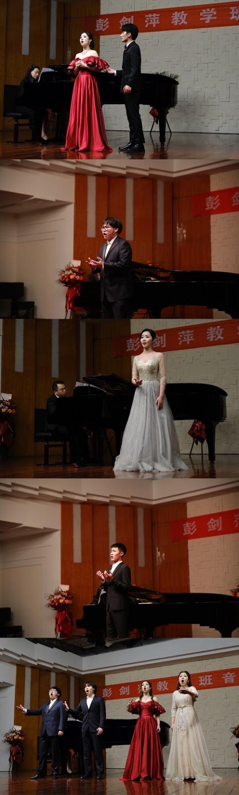 音乐会在三位老师的精心指导下,最终选定了十八个节目呈现在舞台上,其中包括中国艺术歌曲,韩国艺术歌曲,以及著名歌剧选段作品,在表演形式上有,男女四重唱节目2个,男女二重唱节目1个,男生六重唱节目1个,教学班的每位同学都参与其中,为老师观众以及嘉宾们带来了精彩的表演!