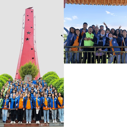 朝英雄的英勇故事。同学们在红军塔下演唱了《十送红军》《国际歌》。