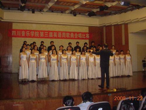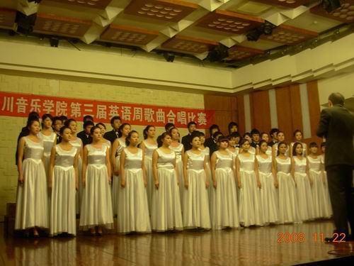 2008年11月28日晚,我系2007级40位同学参加了学院第三届英语周歌曲合唱比赛, 演唱的英文曲目<<安魂曲—震怒之日>>受到评委和观演师生的一致好评,最终喜获该类节目一等奖. 担任本次合唱指挥为朱曦,艺术指导朱梅玲, 钢琴伴奏何捷.