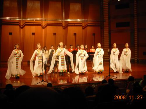 2008年 11月27日晚,声乐二系民族教师声乐专场音乐会在学院大音乐厅上演。这是继2005年后第四场民族音乐会的又一场教师专场汇报﹑交流音乐会。学院相关部门负责人及我院师生700多人观看了这场演出。参加本场音乐会的中青年教师,他们以独唱﹑合唱等多种形式演唱了中国经典名歌,如:<<大江南>>﹑<<我的祖国>>﹑<<长鼓敲起来>>等一些脍炙人口的歌曲。本场音乐会中各位老师精彩的演唱使现场的气氛浓浓﹑掌声不断。让在场的各位观众领略了民族声乐的超凡魅力。 最后音乐会在全体演员演唱由我院院长敖昌群教授作曲的歌曲<<人民的子弟兵>>的歌声中结束.这也标志着声乐二系教师音乐会第四年度画上了完美的句号。 此次音乐会是在继本月举行的美声专场音乐会后又一次向观众献上的视听盛宴,达到了锻炼青年教师的目的,同时也展示了声乐二系近一年来的教学水平。 今后,声乐二系还将举办同样的音乐会以呈现给广大师生及各位观众朋友。