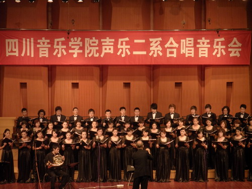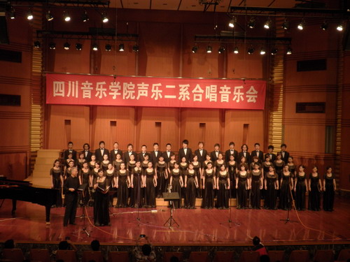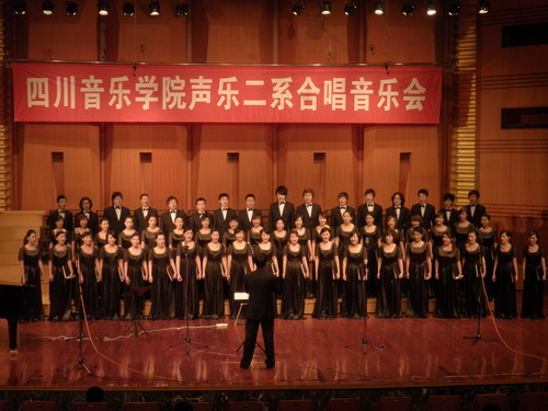 2009年5月15日晚.声乐二系合唱音乐会在我院大音乐厅隆重举行, 学院相关部门负责人,我院师生和部分其它高校合唱专业的师生以及社会合唱爱好者共700多人观看了演出。 本场音乐会是声乐二系建立此专业以来举行的第二场合唱音乐会。在音乐会中他们演出了许多中外的名曲,如: <<茉莉花>>、<<凤阳花鼓>>和由我院院长敖昌群教授作曲的歌曲<<我爱你中华>>以及一些外国作品<>、<>等。 在整场音乐会中同学们精彩的演出以及两位指挥老师充满激情的指挥表演使音乐会气氛热烈、掌声不断。. 担任本场音乐会指挥的是我院作曲系教研室副主任,伟德bv国际体育合唱协会理事艾明老师及来自美国辛辛那提大学音乐学院指挥主任EarlRivers教授。.