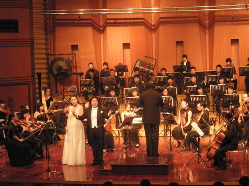 2009年6月27日晚,受我系邀请,旅德著名男高音歌唱家许昌独唱音乐会在我院大音乐厅隆重上演,院长敖昌群等学院相关部门领导及其它高校声乐爱好者600多人观看了演出。. 当晚的音乐会在我院交响乐团的伴奏和刘玲.张怡两位青年老师助唱中进行,在本场音乐会中共演唱了多首中外著名曲目.如<<我爱你中华>> . << 星光灿烂>.<<今夜无人入睡>>.<<冰凉的小手>>.<<军中女郎>>等曲目.歌唱家许昌在当晚精彩的演出不时博得在场观众阵阵热烈的掌声,特别是在演唱男高音经典曲目<<军中女郎>>.和<<今夜无人入睡>>这两首曲目时,现场观众的热情达到了空前的高涨。. 许昌是旅居德国的中国著名男高音歌唱家,在欧洲尤其在德国歌剧界享有极高的盛誉,他曾在世界各地举办独唱音乐会和主演了多部歌剧扮演男主角,被认为是中国最优秀的男高音歌唱家之一。