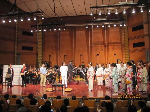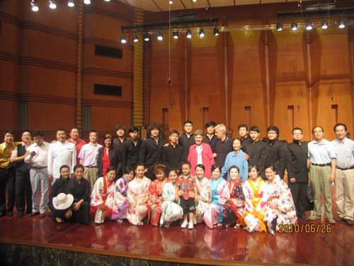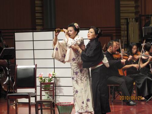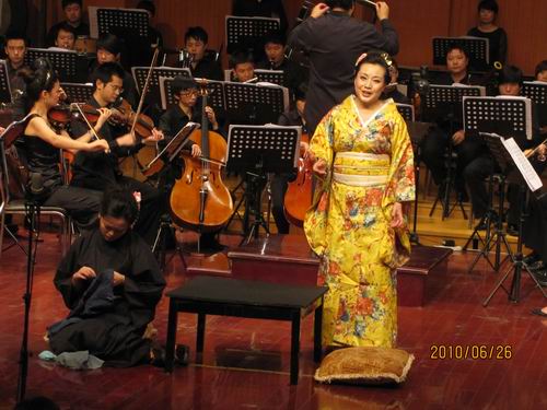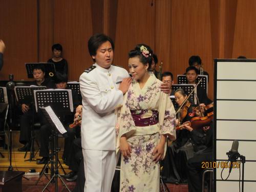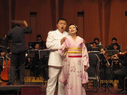 2010年6月25 日、26日两晚,伟德bv国际体育大音乐厅座无虚席,由我系主办的《蝴蝶夫人》歌剧音乐会在学院大音乐厅成功上演。 这是继2006年歌剧《茶花女》、2007年歌剧《托斯卡》及2009年歌剧《波西米亚人》取得成功后的又一场歌剧音乐会。院长敖昌群、副院长易柯及1000余师生观看了演出。