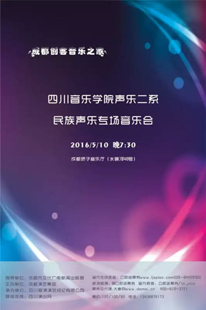 我系此次音乐会于2016年5月10日19点30分在娇子音乐厅举办,民族教研室的老师们将为观众演唱20余首抒情与高难度的中国经典歌曲。这不仅是一场观赏音乐会,也是一场教学实践的交流会,更是众多声乐爱好者学习的机会。