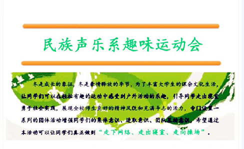 让学生们可以在轻松有趣的运动中感受到户外活动的乐趣,引导大家走出寝室勇于社会实践,专门设置一系列的团体活动增强学生们的集体意识、进取意识、团队互助意识等,希望通过本活动可以让学生们真正做到“走下网络、走出寝室、走向操场”。