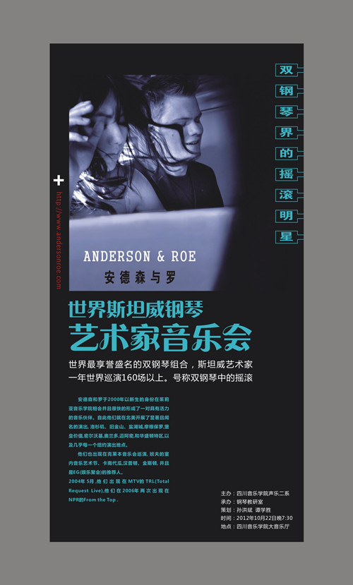 安德森与罗 世界最享誉盛名的双钢琴组合,斯坦威艺术家一年世界巡演160场以上,号称双钢琴中的摇滚。