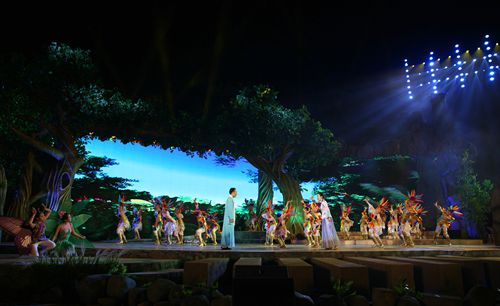 经过前期紧张的排练,我院师生30余人于2017年4月5日赴彭州市白鹿镇参加“成都第三届天府古镇艺术节”原创大型音乐剧《东方巴黎•白鹿》的排练演出活动。 在学院领导的大力支持和帮助下,我院师生发扬不怕苦不怕累的优良作风,圆满完成了此次天府古镇艺术节的排练演出任务。 在演出中,我院学生良好的专业素质和精湛的舞艺得到了成都市政府以及学院领导的赞扬和认可,绚丽的舞蹈和优美的舞姿也成整台音乐剧演出中的一道靓丽风景线。