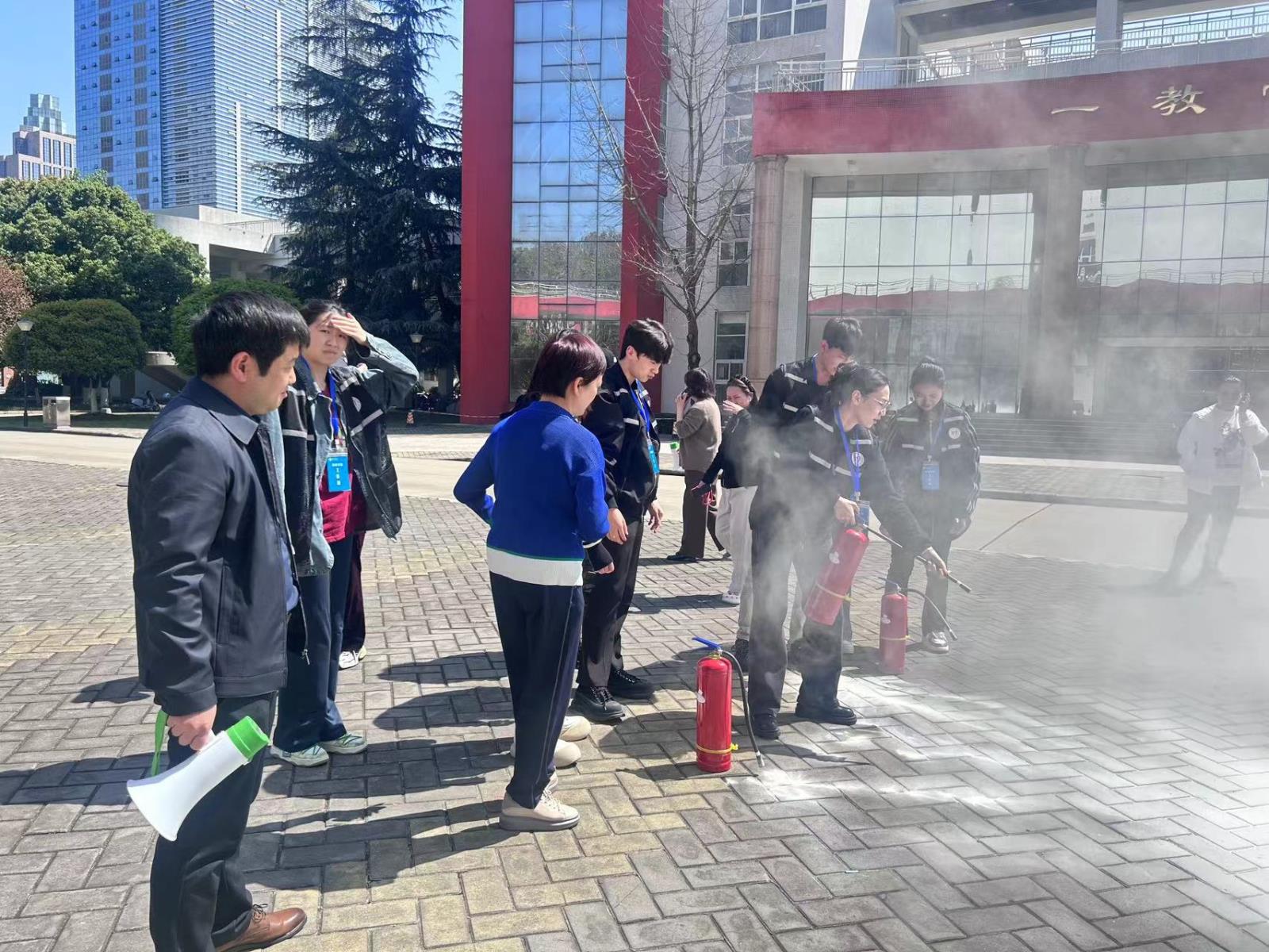 本次演练方案经保卫处审核同意,主要以模拟正在四教学楼行课的师生突遇地震、火灾发生时的应急逃生疏散为背景展开。上午11:40,随着尖锐刺耳的警报声响起,演练正式拉开序幕,四教学楼一、二楼行课的师生迅速进入演练状态,任课教师按照避震要领马上组织学生在教室避震;11:41,震感结束并发火灾,任课教师快速组织学生按照预定逃生线路有序疏散学生。学生在逃生过程中保持正确姿势,手捂口鼻,俯首低行,听从引导人员指挥,于 11:44全部演练人员有序到达指定集结点。随后,保卫处消防科科长邓建勋为大家详细讲解了疏散逃生动作要领和注意事项,并现场进行灭火指导,在大家完成灭火体验后,本次演练所有环节全部结束。