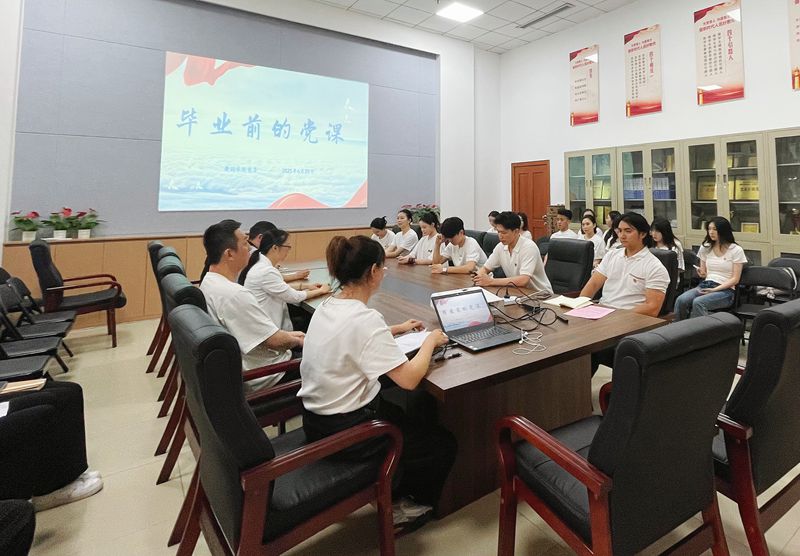 6月23日中午,舞蹈学院党委在第四教学楼110会议室开展“毕业前的党课”活动。党委书记程静、副书记张滔、党员教师代表、各年级辅导员和17名毕业生党员参加。本次活动以“坚定信仰跟党走 砥砺奋进建新功”为主题,为即将告别母校的2025届毕业生党员们讲授离校前最后一堂党课,激励他们走好新的赶考之路。