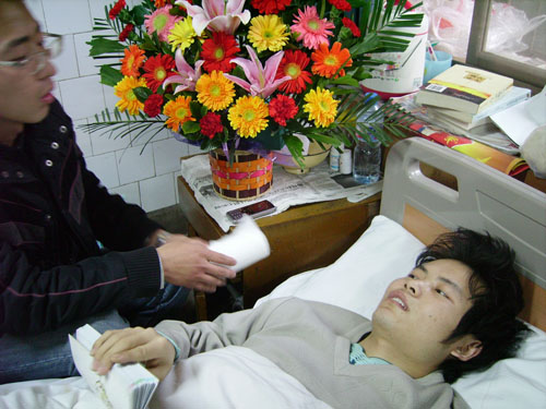 2008年3月13日,我系党支部书记余光昭一行,代表伟德bv国际体育到达河南郑州对我系白血病患者冯文锋同学进行看望慰问。并带去了学院两天内募捐到的爱心捐款十万余元。 期间,余书记向冯文峰家属仔细了解了最近的医治情况,转达了学院领导和同学们对他的深切关心,并鼓励冯文峰坚强振作,勇敢的和病魔作斗争,早日康复,回到同学和老师的身边。 冯文峰河南淮阳人,我系06级学生。该生在校期间一直品学兼优,其家境贫寒,父亲是农村小学教师,母亲务农,兄弟三人均在求学。冯文峰2008年春节期间在家被确诊为急性白血病,学院领导了解到其情况后,立即组织在全院范围内进行爱心募捐。两天内共计募捐到100691元,当冯文峰的父亲含泪在余书记手中接过这笔爱心救治款时,表达了对学校的不尽感激。